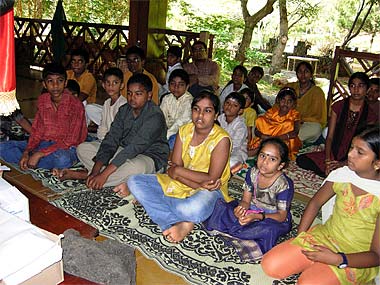 We also organized a game of treasure hunt. The first challenge, though, was to answer questions on Satguru Bodhinatha's "Saivite Hindu Religion Book V"