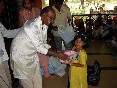 Kulapati Amba Valaytan offering a gift to a very devotee of Lord Ganesha.