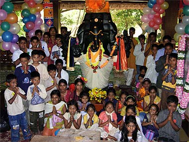 A souvenir photo with all our participants around Pancha Mukha Ganapati. Happy Pancha Ganapati 2008 to everyone!