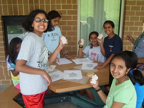 For many years, Satya Palani molded clay Ganesh murtis for the Golden Gate Mission's celebration of Ganesha Chathurthi. He passed the tradition on to Kartikeya Katir, who has expanded production a bit. Here are his murtis distributed to the Sri Venkateshwara Temple Youth Camp in Pennsylvania.