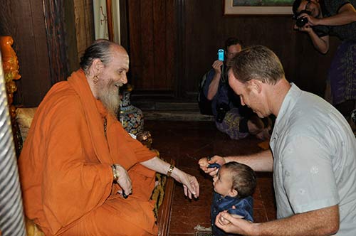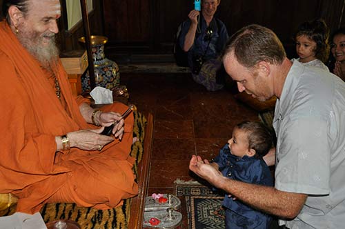 Jahan's first haircut. Bodhinatha has cut a lock of his hair.