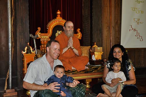 Suprika Kakkar, her husband and two boys, Jahan and Roshan. Bodhinatha cut one lock of hair from each of the boys