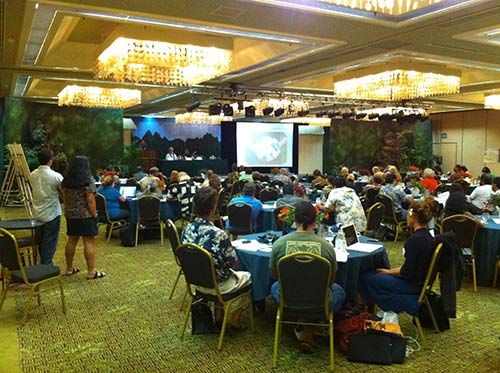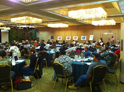 Wide shot of part of the audience. Topics included Human Resources, Production and Marketing with a luncheon address by Dr. Makena Coffman of the University of Hawaii on issues in bio-energy development.