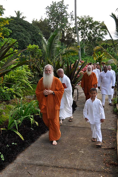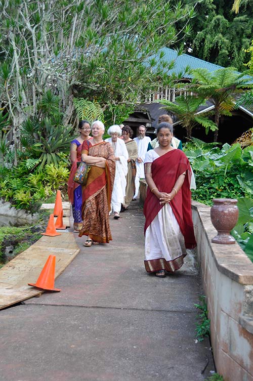 Krittika Dipa is the major festival of Jivana Ritau. This grand event, conducted by the family missions, is open to members, Academy students and to special guests by invitation, including honored dignitaries of the island, neighbors and friends of the Church. Ganesha Chaturthi and Skanda Shashthi are also conducted by shishyas on the Island. The Aadheenam Realms of this period are: 1) San Marga, the straight path to God, with its rudraksha, neem, konrai and bilva forests, and Agni Mandapam. 2) The Wailua River, with its Nani Kaua Waterfall and Pond, Bali Hai Falls and Ganga Sadhana Ghats. 3) Pihanakalani Trail--legendary Hawaiian path toward the volcano, beginning at the Aadheenam and continuing past the Orchid Pavilion of Religions to the Teak Tree Turnaround at the edge of Rainbow Amphitheater.