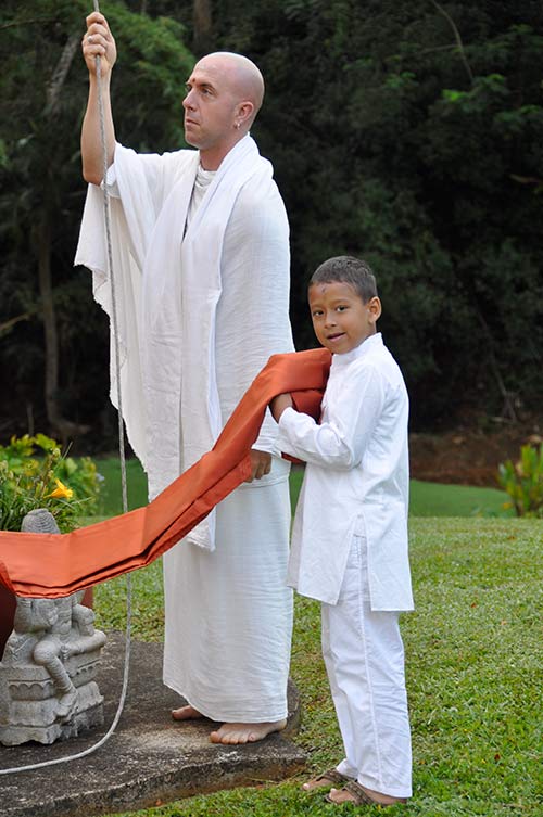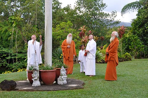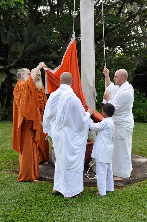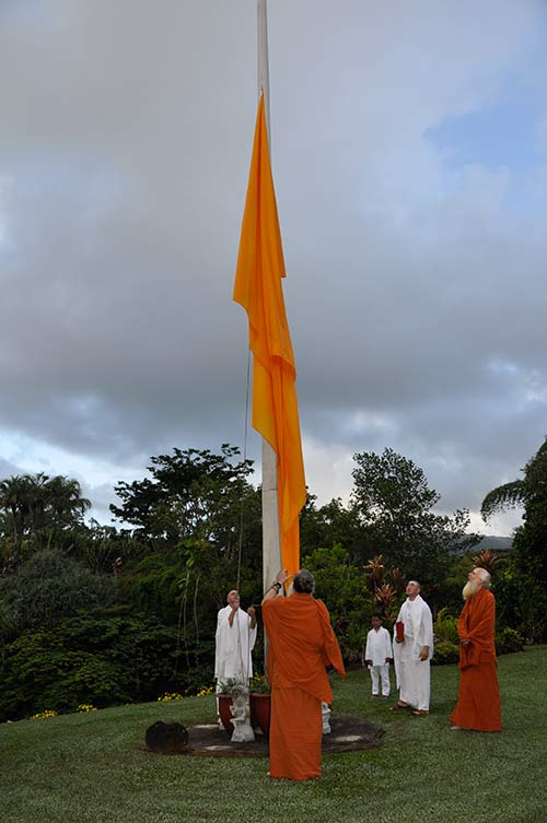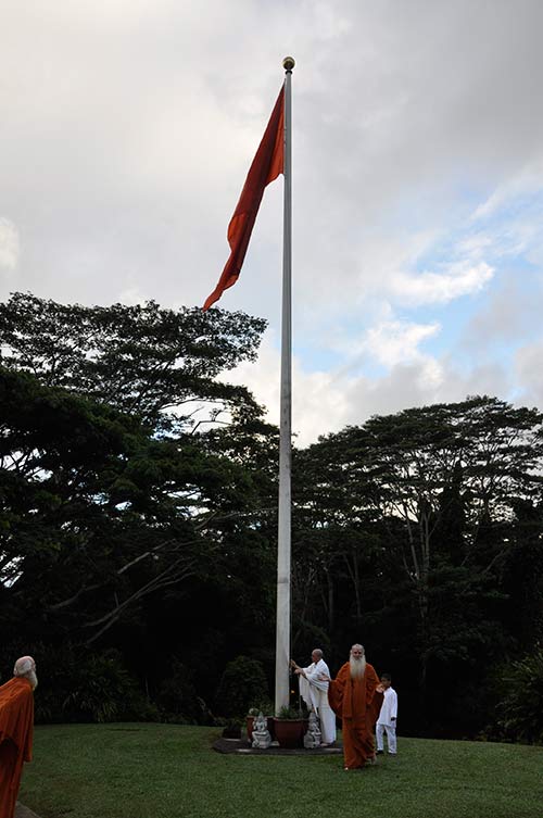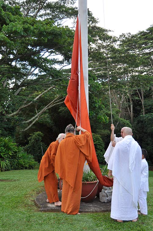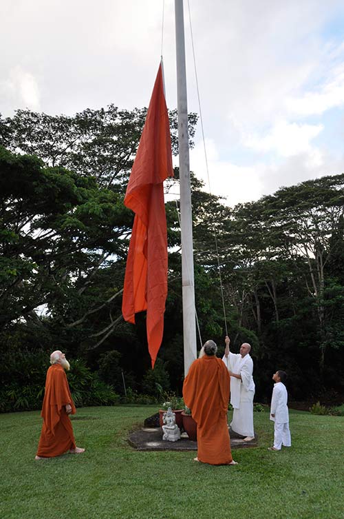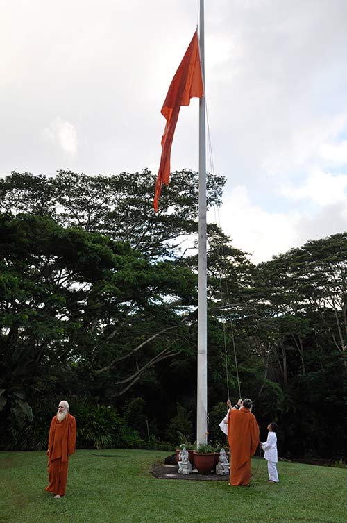 Our summer Sadhu Paksha is over and we began Sun One today after the homa with the traditional raising of our Hindu Dvaja -- Flag Raising.