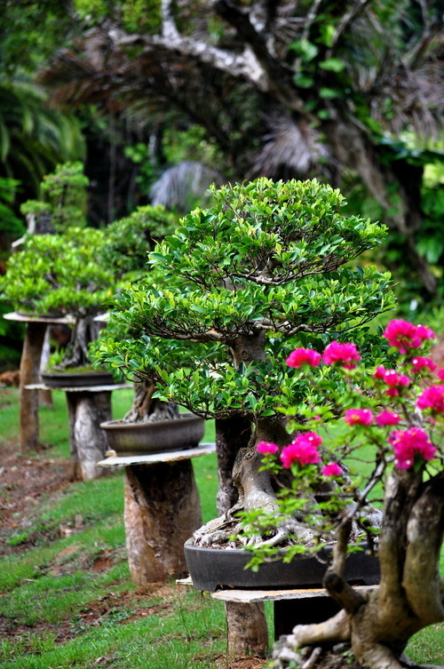 Past the bonsais.