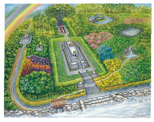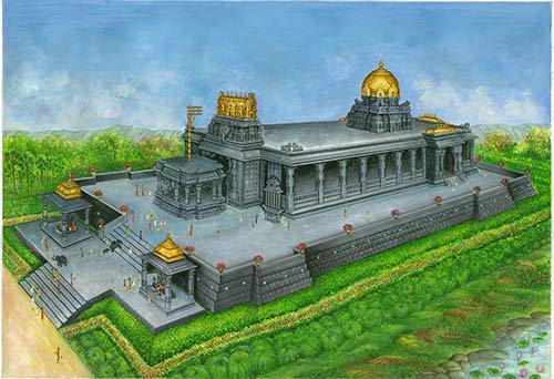 This is artists view of Iraivan temple. While the people in the picture are drawn a bit small (they would be much bigger in real life) it is a lovely depiction of the temple.