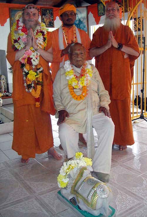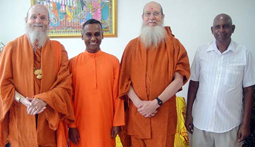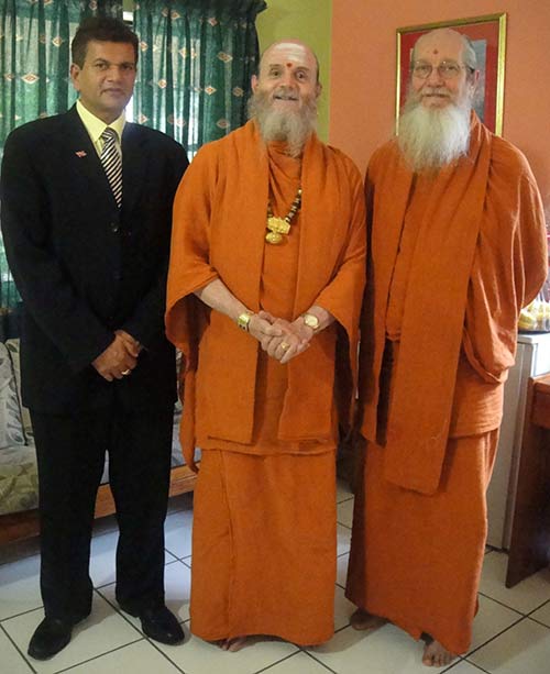 In photo from left to right, Bodhinatha, Swami Prakashananda, Shanmuganatha and Mr. Beharry.