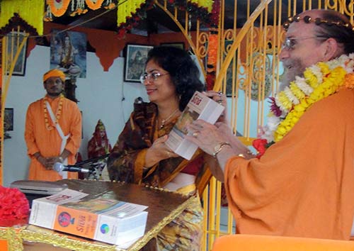 Bodhinatha presents Dancing With Siva to Mrs. Sunita Pahuja, representing the Indian High Commissioner. This was her first official function since taking up her post in Trinidad two months ago.
