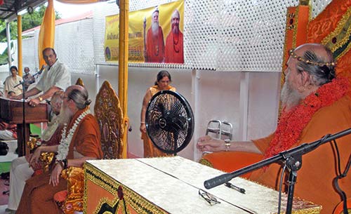 At the second function that Bodhinatha and Shanmuganathaswami attended at the Hari Mandir in Tuna Puna, August 22nd, Trinidad's minister of education, Dr. Tim Gopeesingh, was present. He attended the entire function. After listening to Bodhinatha's talk, his turn came to speak. The camera catches the moment when he tells Bodhinatha that he will see to it that Gurudeva's Dancing With Siva will be placed into all of Trinidad's public schools. This was the fulfillment of a long-time dream and project of the hosts of this event: Pandit Narendra and Ashwinee Ragoonanan. The moment was extremely auspicious and you see in this photo the instant it happened. Jai!