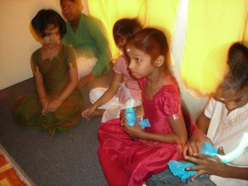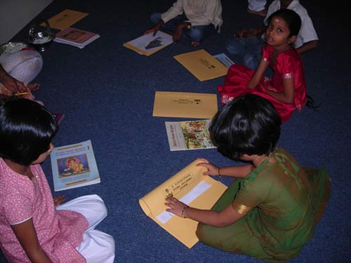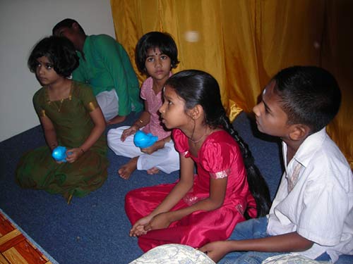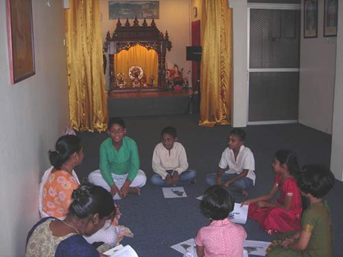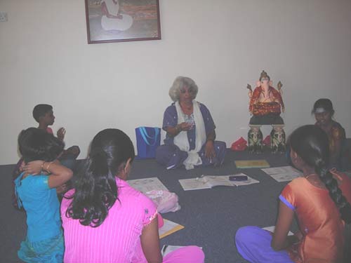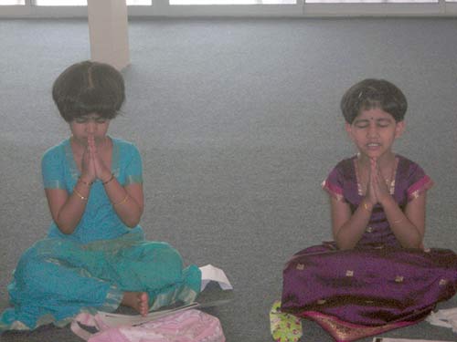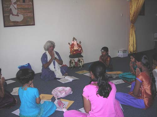 The Iraivan Illam center had it's registration recently and now classes have begun. Here children start by chanting aum.
