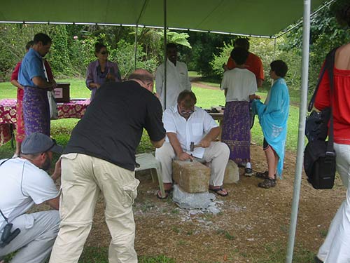 As our tour guests walk the garden path, the monks are busy pouring gallons of milk, yogurt, ghee and honey on Kadavul Nataraja for the monthly Ardra Puja. The bells and chanting are ringing through the air.