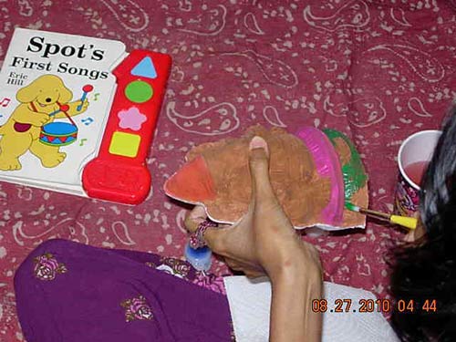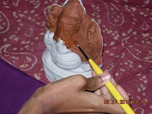 Gowrie Sankara, holds up a clay Ganesha getting ready to be painted.
