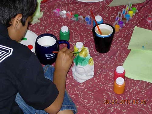 Kartikeya Katir's Ganesha's were put to us in Californiaas devotees there prepared for Ganesha Chaturthi tomorrow.