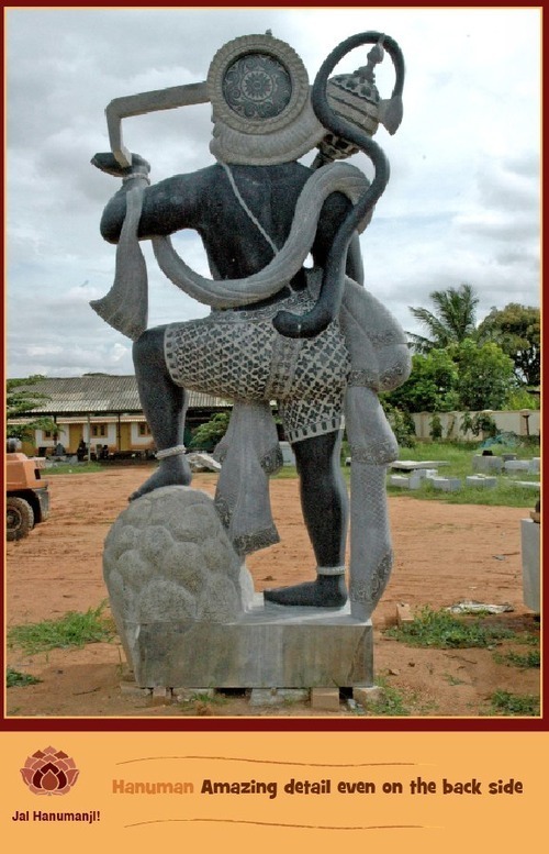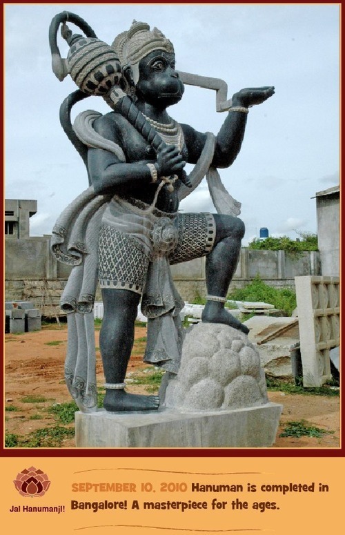 He is finished! After many years of planning, designing, quarrying, carving, sculpting, fine-tuning Hanuman stands 12-feet-tall at our site in Bengaluru.