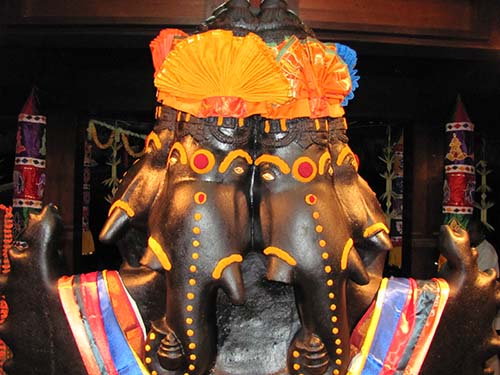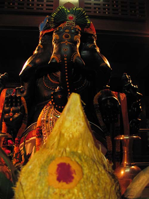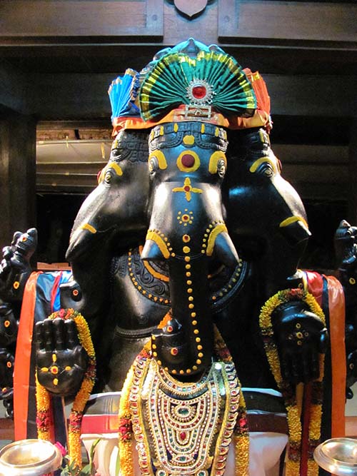 Another shot of Lord Pancha Mukha Ganapati with freshly applied chandanam and kumkum.