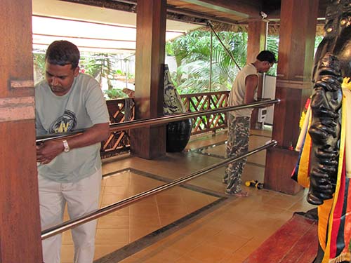 The railings will help control the huge flow of devotees coming inside the Mandapam for darshan when the final arati is over during our monthly Ganesha Homa.