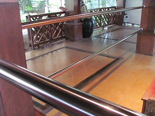 One new development inside the Mandapam was the fixing of new stainless steel railings. Two of these run at the back of the murti.