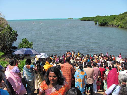 Everyone watches the boats as they glided over the estuary which merges in the ocean reminding all present of the soul merging into its Creator, Lord Siva. The ceremony ends in fervour with bajans leaving joys and happiness in the hearts of everyone present.
