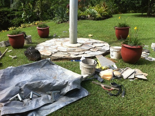 Not far away Jonathan works on the stone paving of the flagpole. Details tomorrow!