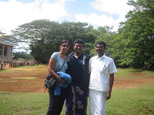 Sonu and Anmol coming from Chicago are on their honeymoon visiting Kauai. They heard about the temple after they arrived here on the Island and were so happy to have this blessings. Kannan our silpi was asked to join them in the photograph.