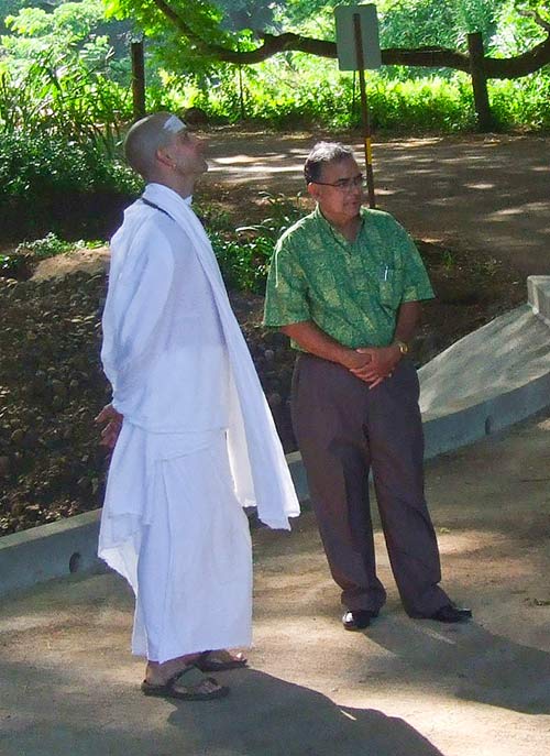 The engineer on this project is Venkatesan Kuppusamy who is a county employee. He is now a Kauai resident, originally from Chennai, who comes to the temple regularly to worship, is helping Yoginathaswami with our construction plans and invited the monks to join him for the opening of the renovated bridge.