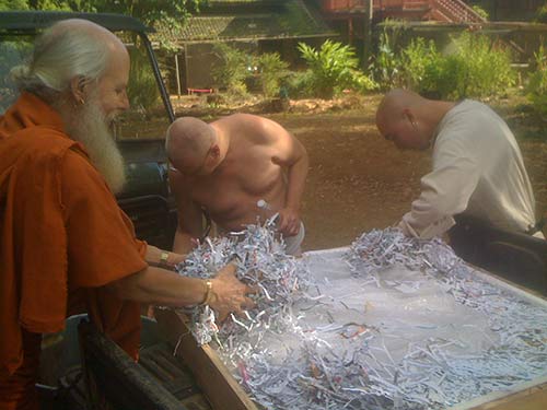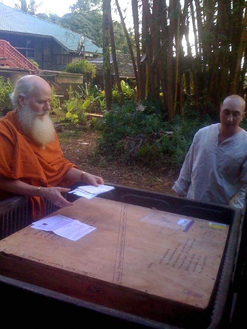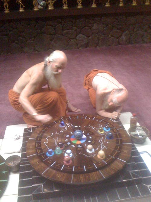 Paramacharya Ceyonswami opens up the new Jyotisha board that has arrived from India.