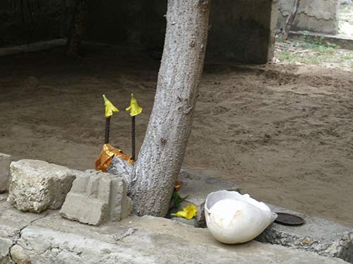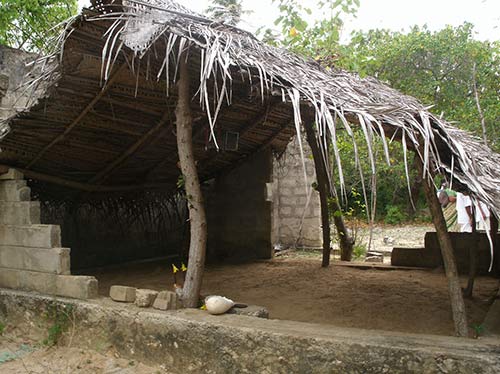 A few devotees came back to the island made a small coconut leaves thatched roof and have resumed the worship.