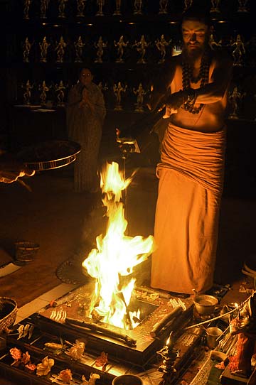 Today we also burned prayers in the fire. Gurudeva brought back into practice this almost-forgotten tantra of communication between the three worlds.