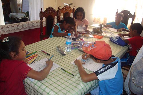 Poobarlene and Kevina Soobramanien report: "The Saivite Hindu Religion class is conducted on a fortnight basis and preferably on Saturdays at 3 p.m. At this time most of the students are free from private tuition. On September 25th we separated the class into two groups: the older and the younger students. We ended up taking that decision after considering the age gap between the two student groups. That is with different concentration span, coping and communication skills.