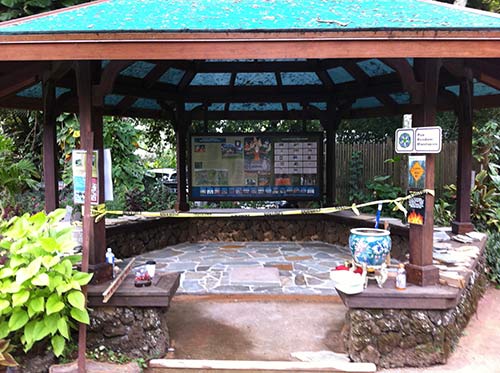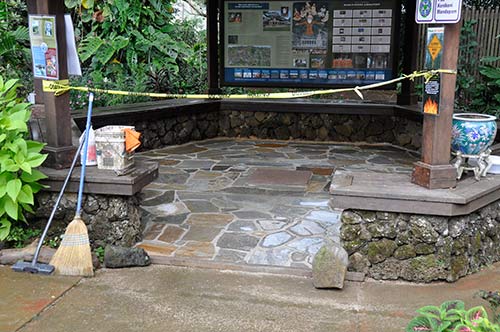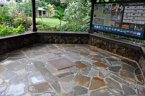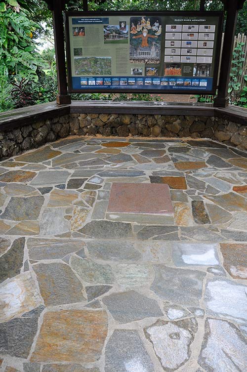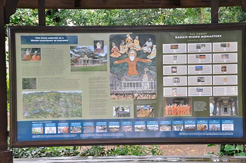 This "All About Kauai's Hindu Monastery" display is in important feature. We have hundreds of people arriving early or after hours when the property is closed. It is not uncommon to find them here reading the poster, which includes the entire booklet by the same name.