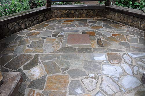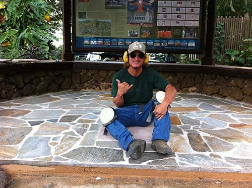 Jonathan Anderson has been working for several days on the installation of the quartzite. It was a challenging job because it required a seven-inch slope from back to front ensure drainage.
