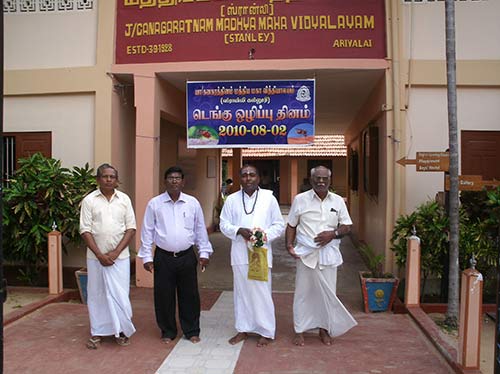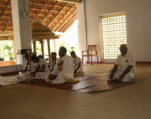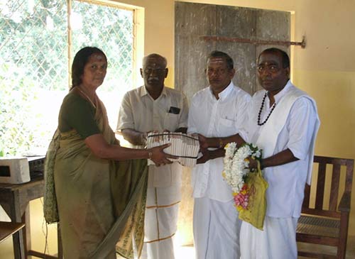 These Natchinthanai sessions went on for 30 minutes and after that I gave my talk. Here the elders of the Sivathondan Nilayam present Natchinthanai books to the school