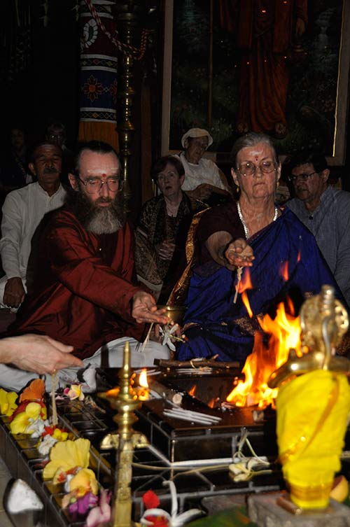We started a new phase today with a special homa that bring two long time Master Course students into Hinduism.