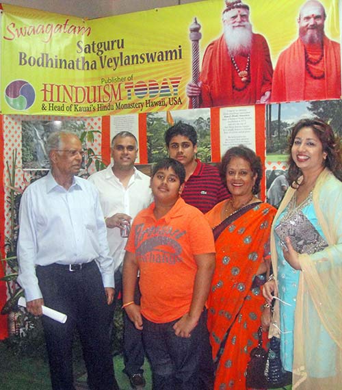 The festival is now over and Ashwinee shares this report with us. "In the final analysis, this was our most successful year at the Diwali Nagar. We shared knowledge of Hinduism through Himalayan Academy publications, we showed many what is available from the monastery's website, we introduced people to Gurudeva and Bodhinatha, showed them the making of Iraivan temple, and distributed a lot of free literature. Visitors numbered between 200 - 500 each night and at least 1000 on the last night." Here we have a family that isn't Hindu, but was so impressed with the literature that they bought Dancing with Siva, What is Hinduism? Mystic Mouse, and were given various booklets. They were so enthusiastic, we are sure they will be back.