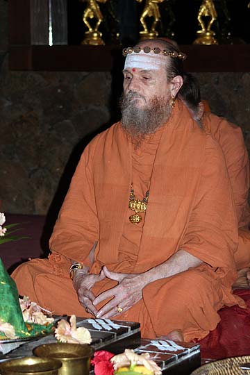 However the main crowd was the one reached as a live broadcast on Asta television of the 2 - 3 PM portion. This part included a short talk by Palaniswami and then the presentation of the Hindu of the Year Award to Sri Gopal Sharan. The head of the Nimbarka Sampradaya gave one of the talks. He is elderly and has the look of a man who has done serious sadhana his whole life. A few misc. meetings finished up the day.