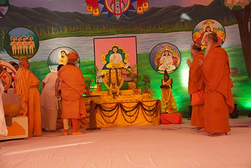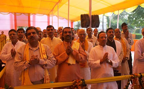 "The main event was under a large tent, and went from 1:30 to 4:00, with Bodhinatha's talk taking the first thirty minutes, followed by three long discourses in Hindi. He spoke on the parallels between our own monistic theism and the Dvaita-Advaita of the Nimbarka tradition, and he urged families to have a shrine in their home and worship there daily. Many comments afterwards on his talk.