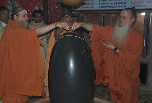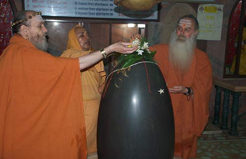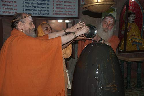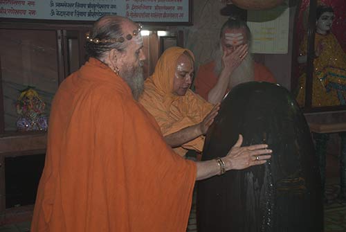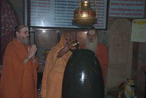 Sri Gopal Sharan Devacharya invited us to come to his side today and join in every offering. It was a bit blissful, the three of us offering chandanam (they stone grind the real thing each morning, adding a little saffron for color), durva grass, flowers, and hand bathing the lingam with fragrant oils, a kind of loving oil message we all gave for our dear Siva.