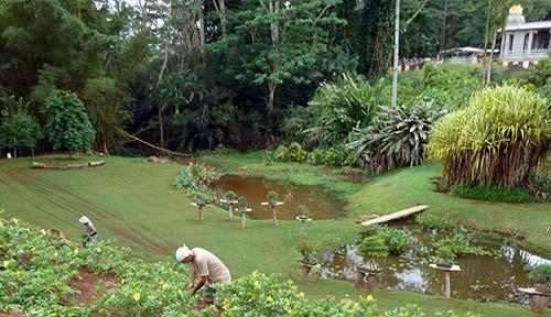 We catch two humble karma yogis in action. Tandu and Toshadeva are so dedicated to bringing Rishi Valley into full bloom by planting hundreds of baby Alamanda.
