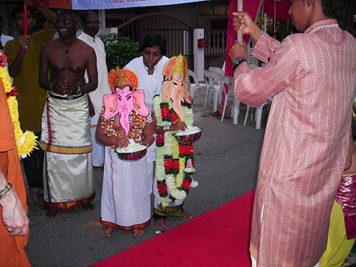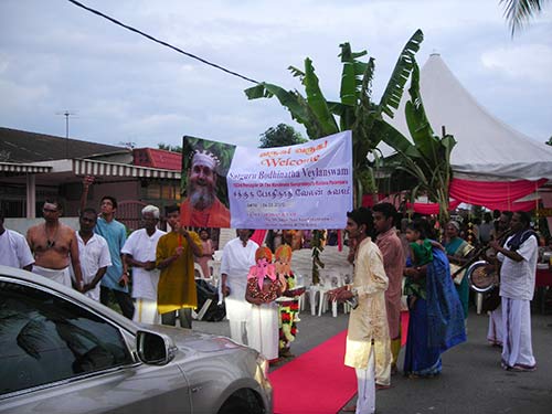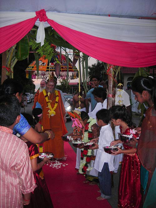 At out new center in Klang called Iraivan Illam, the members have set up a huge tent to accomodate everyone. Here are the children ready greet Satguru on arrival.