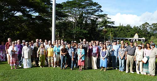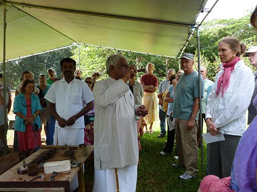 Here Jiva explains that they sharpen about 3,000 chisels a day at the Iraivan worksite! Guests were able to get answers to every conceivable question about the construction of Iraivan. How wonderful to have Jiva here!