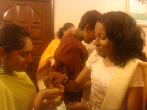 After puja is performed the family sits together for the purpose of easing any strained relationships that have arisen during the year.