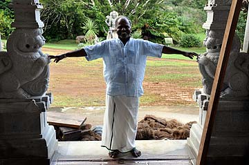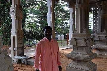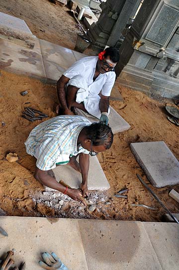 Our silpis now have a cool shade and a roof over their heads to work on the floor of Iraivan.