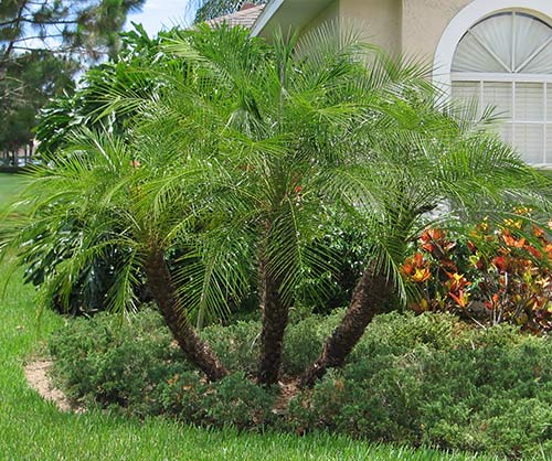 Here is a mature dwarf date palms that someone has purchased and placed in front of their home.