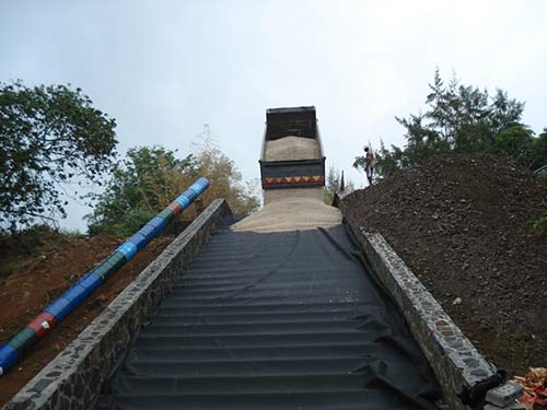 Now it is time to fill all these areas with sand and gravel. But how to get a truck down here?