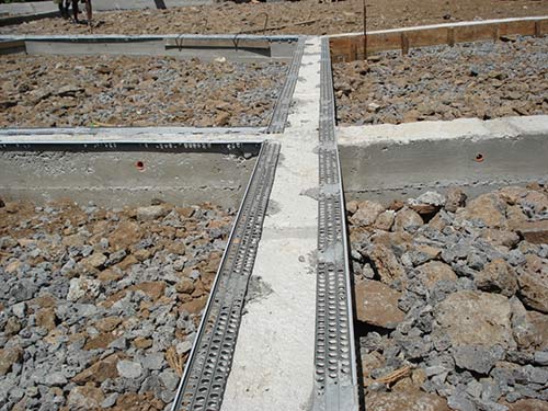 drainage grates along the edges of separating supports for the material to come.