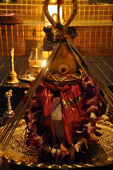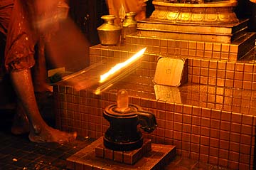 The kumbha pot in front which was the last of the items poured over Nataraja.
