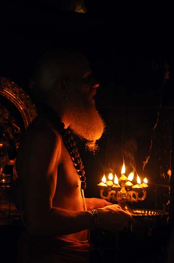 Offering the arati after each item is poured...