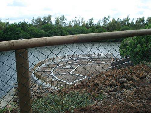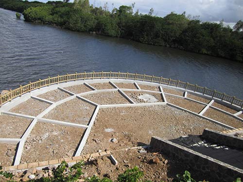 The Mauritius property rises sharply up from the edge of the river at where it enters the sea. It present a safey problem for the public. We have completed a boundary fence all along the edge.