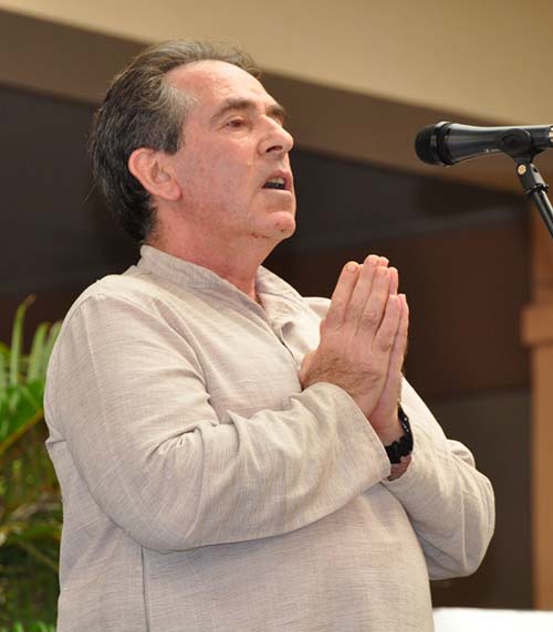 Kulapati Vel Alahan spoke on ahimsa and the relationship between Gandhi and Martin Luther King and sharing Gurudeva's message that non-violence starts with ending the war in the home, putting an end to domestic violence.